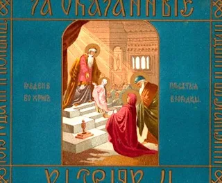 На иконе (на знамени семеновцев) изображена сама Богородица в виде трехлетней девочки, что поднимается по ступеням Иерусалимского храма, за ней ее родители Иоаким и Анна, ее встречает первосвященник.